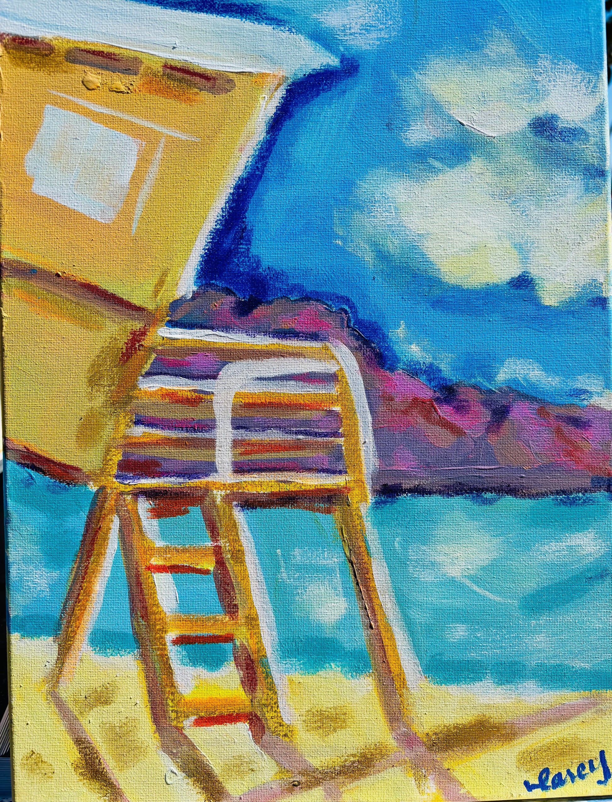 Experience the beauty of the Goleta lifeguard tower with our vibrant and bold design. Perfect for those who dream of gazing at the ocean for hours, days, and years. Add a pop of color to your day with this colorful painting.