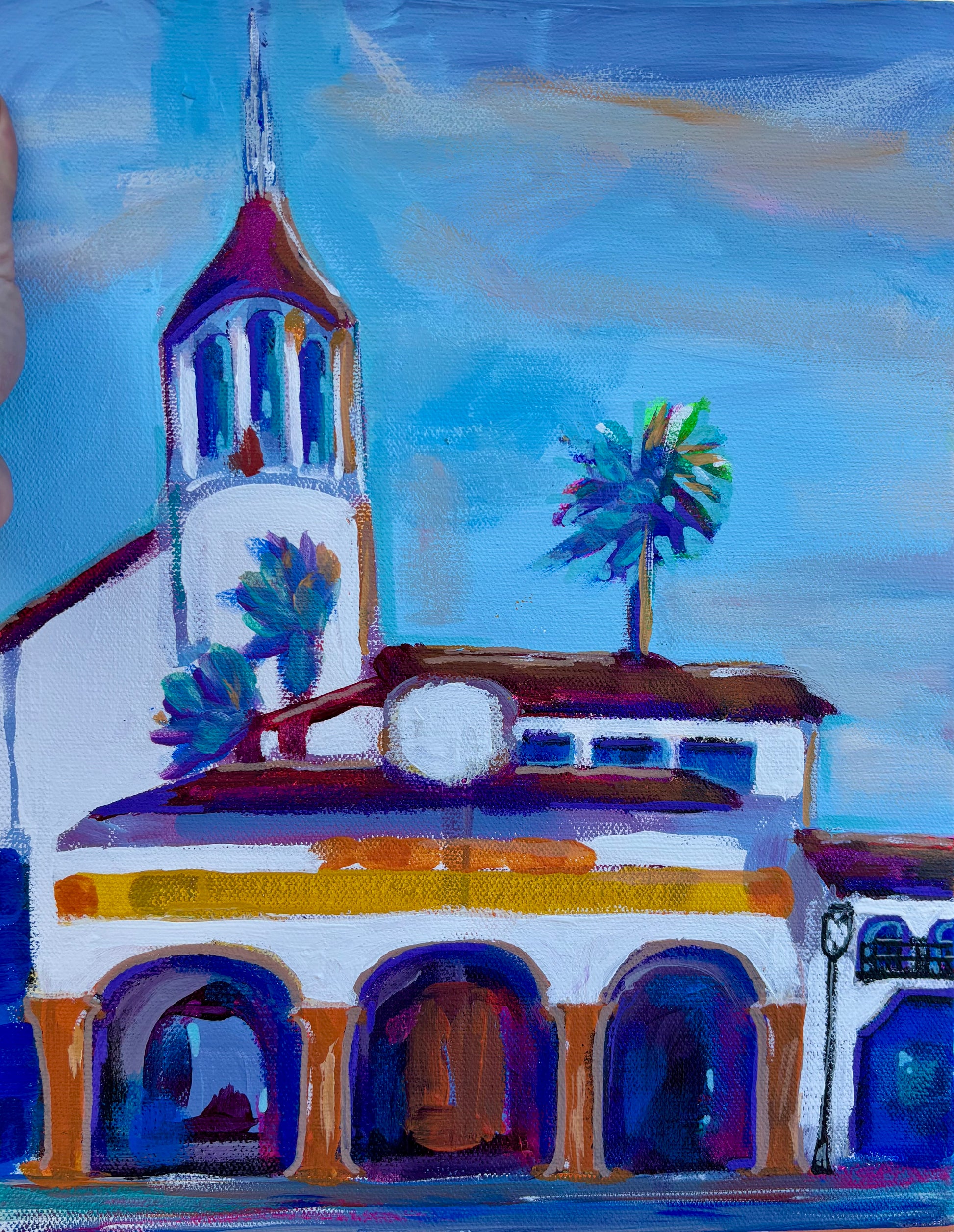 Get a glimpse of Santa Barbara's culture with this original acrylic painting of the Historic Arlington Theatre. Its vibrant colors and attention to detail make it a must-have for any film festival lover. Bring the charm of downtown Santa Barbara into your home with this unique piece.