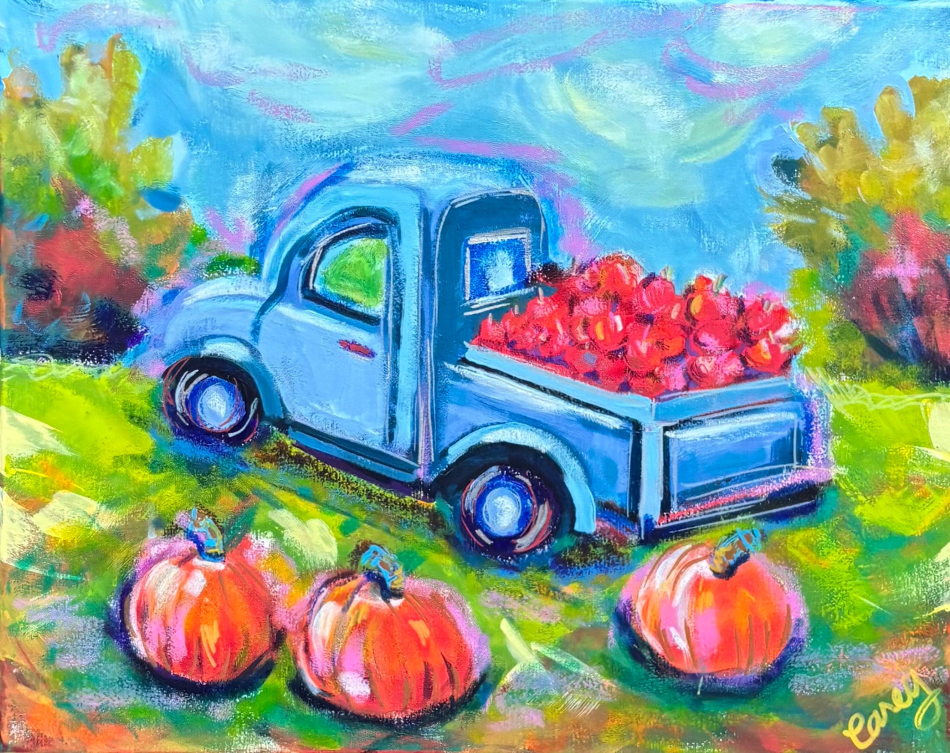 This is my original painting of a rustic truck carrying apples and a pumpkin field.Get into the autumn spirit with Pumpkin and Apple Season! This rustic truck is loaded with the perfect pair of apples and pumpkins. Bring a touch of charm and coziness to your home with this delightful and playful decoration!
